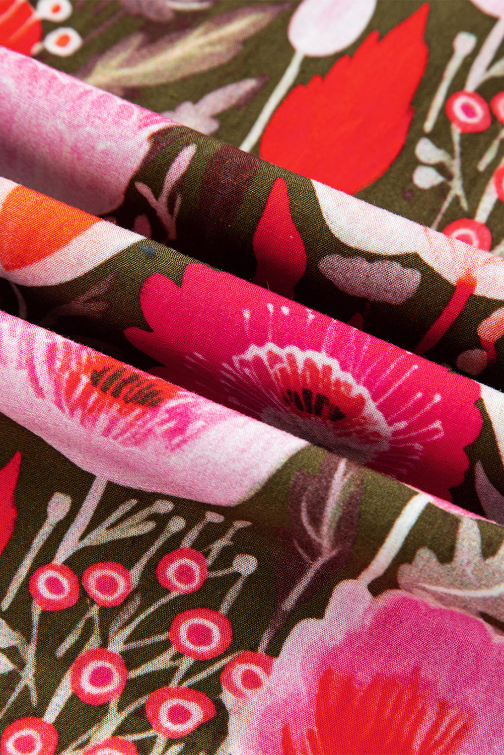 Red Floral 3/4 Sleeve Lace-up Blouse